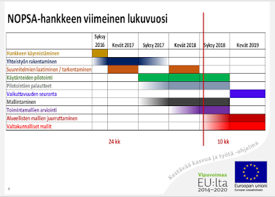Iltapäivällä keskityttiin NOPSA ja Jatkoväylä -hankkeiden yhteistyössä toteuttamaan vertaisarviointiin. Etäyhteydessä ja etäopiskelun menetelmin toteutimme vertaisarvioinnin, jossa valikoidut, NOPSA-hankkeessa kehitetyt toimintamallit saivat palautetta Jatkoväylä-hankkeen toimijoilta; ja vastaavasti Jatkoväylän laatimat valtakunnalliset suositukset saivat palautetta NOPSA-toimijoilta. Lämpimät kiitokset Jatkoväylä-hankkeelle kehittävästä palautteesta! Vertaisarviointi osoittautui oikein hyödylliseksi yhteistoimintamuodoksi. Jatkoväylä-hankkeen päätösseminaari järjestetään Helsingissä 29.11.2018. NOPSA on tapahtumassa mukana.